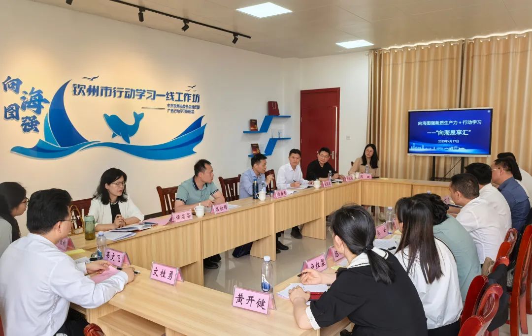 2025年4月17日,自治区行动学习重点项目“向海图强新质生产力+行动学习”——“向海思享汇”活动在钦州市行动学习一线工作坊举行。来自中马钦州产业园区管委、市科技局、钦南区农业农村局等单位的子项目团队代表,与广西行动学习研究会专家、市委组织部和市委党校有关同志共同围绕项目推进中的难点堵点问题展开深入研讨,通过实践分享、复盘总结、专家指导和协同谋划,将“问题清单”转化为“成果清单”,为钦州向海图强注入新动力。