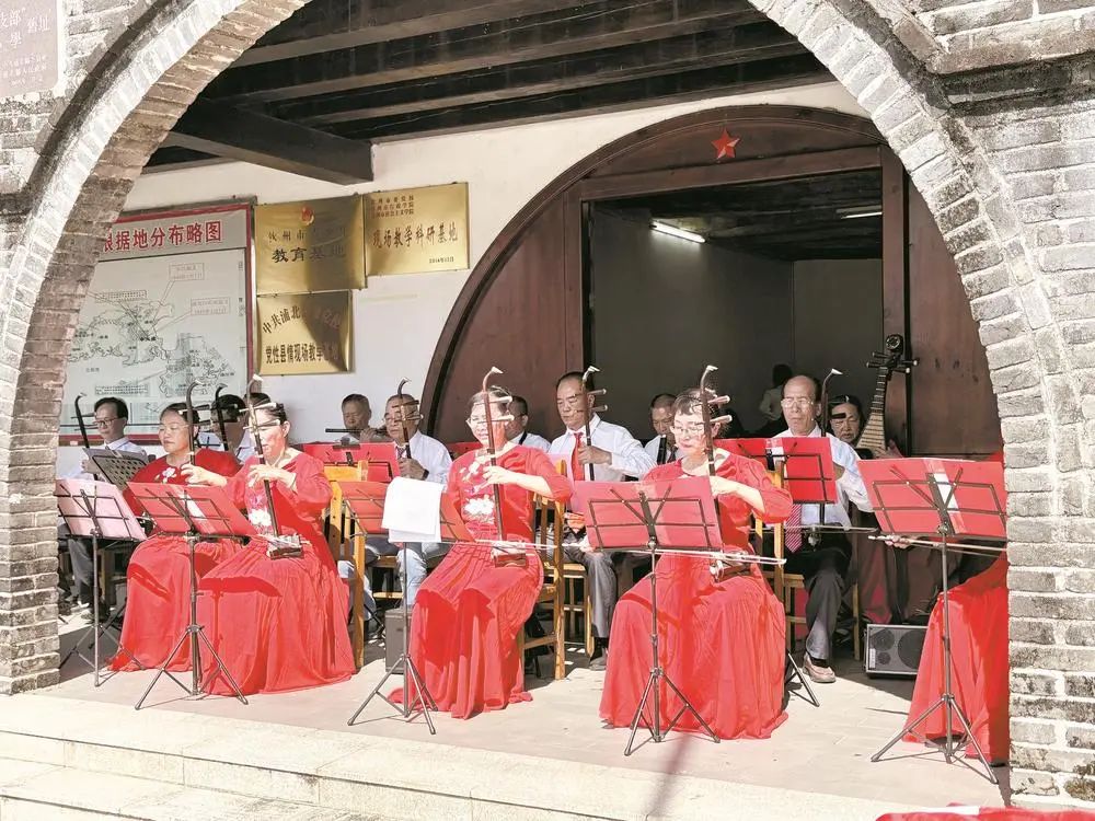 近日,市老年大学戏曲器乐系在浦北县大成镇柑子根第一党支部旧址举办了一场别开生面的红色戏曲演出,将红色革命精神传递到革命老区村民心里。