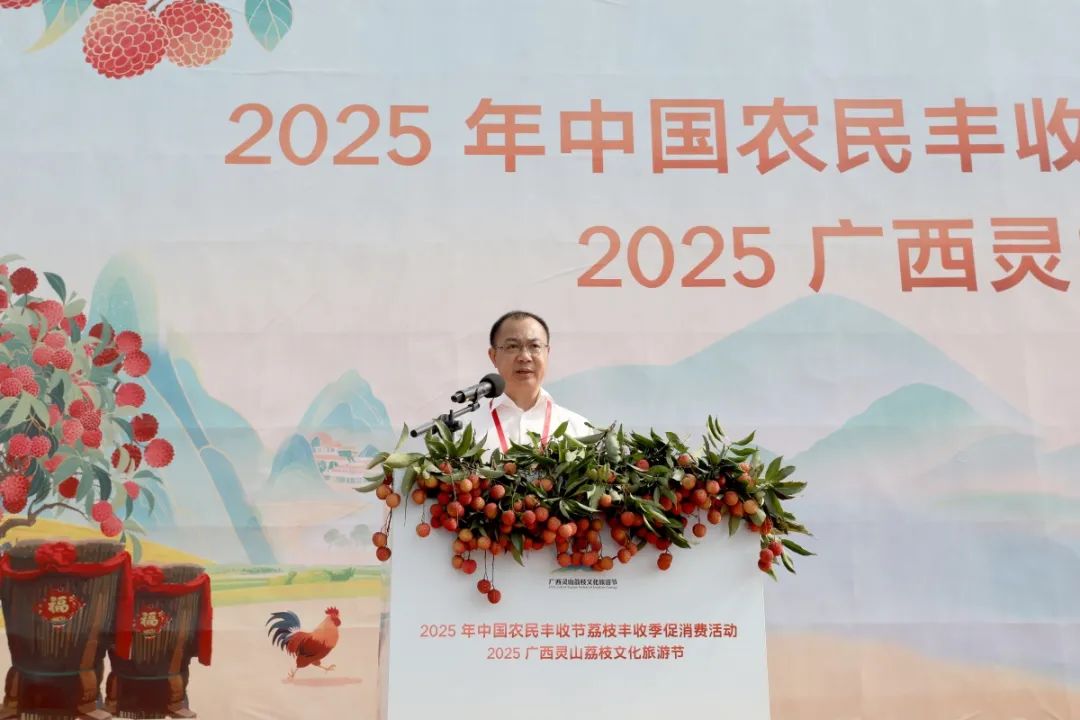 王润雷宣布2025年中国农民丰收节荔枝丰收季促消费活动正式启动。
