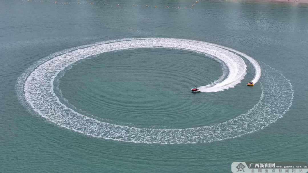 海面上,摩托艇飞驰,拖出长长的白色浪尾。融媒体记者 罗炼新 摄