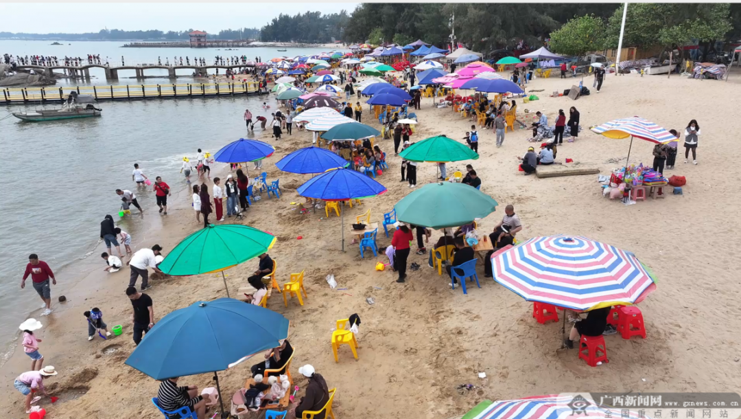 大年初五,暖阳高照,钦州市三娘湾、犀丽湾景区迎来春节客流高峰,来自全国各地的游客涌向碧海银沙,在涛声与欢笑声中尽享滨海假日的惬意。