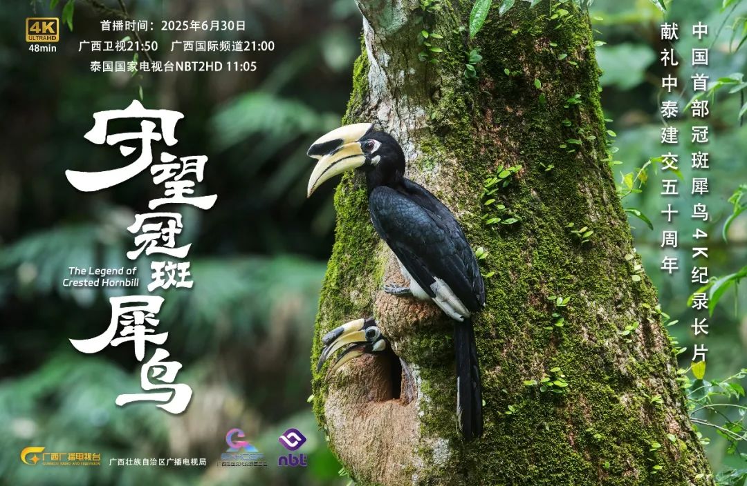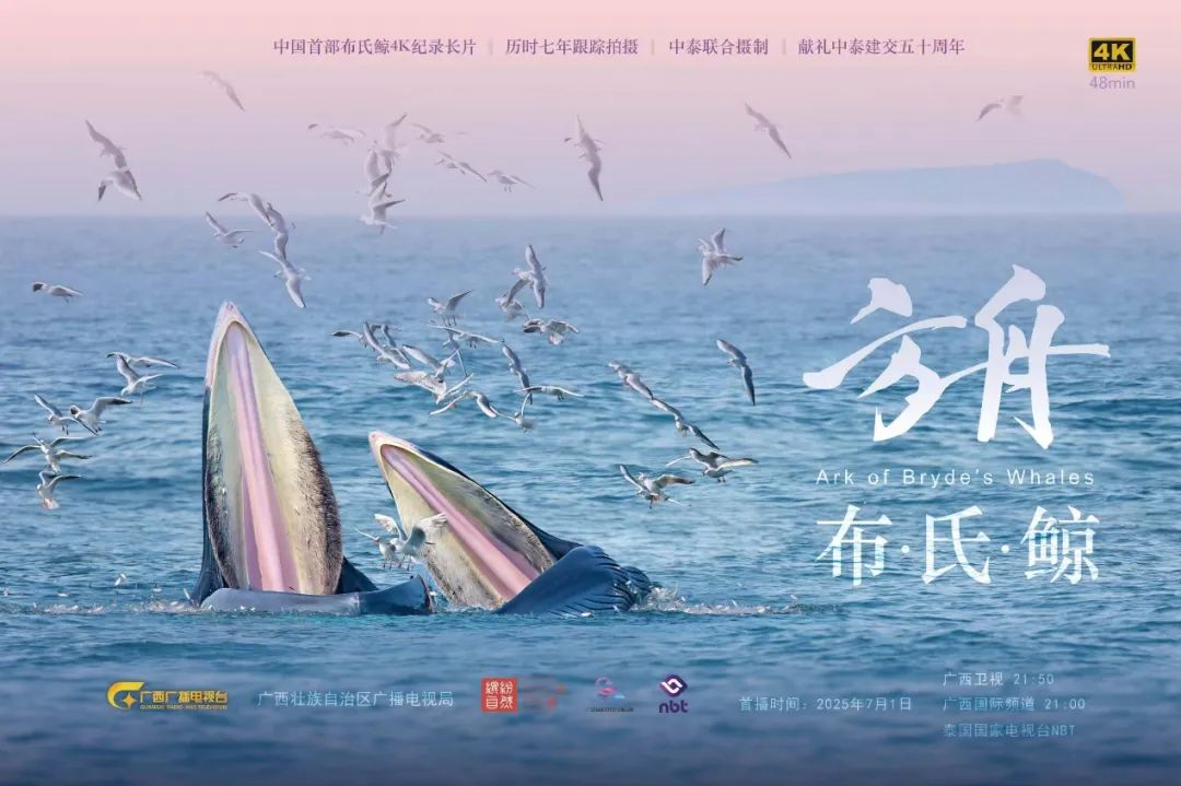 两部纪录片均由广西广播电视台、广西壮族自治区广播电视局、缤纷自然(北京)文化传媒有限公司、泰国国家电视台联合摄制。其中,《方舟—布氏鲸》历经7年跟踪拍摄,是一部关于珍稀濒危物种、中国国家一级保护动物布氏鲸的电视纪录长片。该片以前所未见的独家影像,首次解密涠洲岛海域频繁出现的布氏鲸群这一中国唯一近岸型大型鲸群鲜为人知的生命故事,聚焦中泰科学家携手为布氏鲸打造“生命方舟”、共建“地球生命共同体”的生动实践。《守望冠斑犀鸟》则是我国首部关于该物种的纪录长片,生动记录了中国冠斑犀鸟科研团队——广西陆生野生动物救护研究与疫源疫病监测中心,通过与泰国犀鸟研究基金会跨境合作,共同推动珍稀物种、中国国家一级保护动物冠斑犀鸟种群恢复的感人故事。