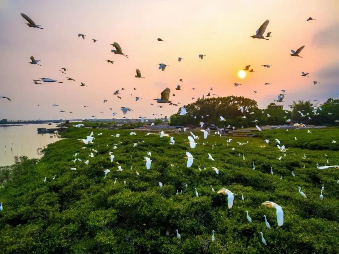 这里还是越冬鸟类栖息地的自然保护区,上千白鹭或翱翔蓝天,或栖息红树林间,场面十分壮观。