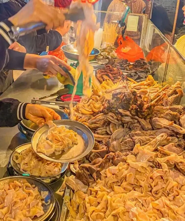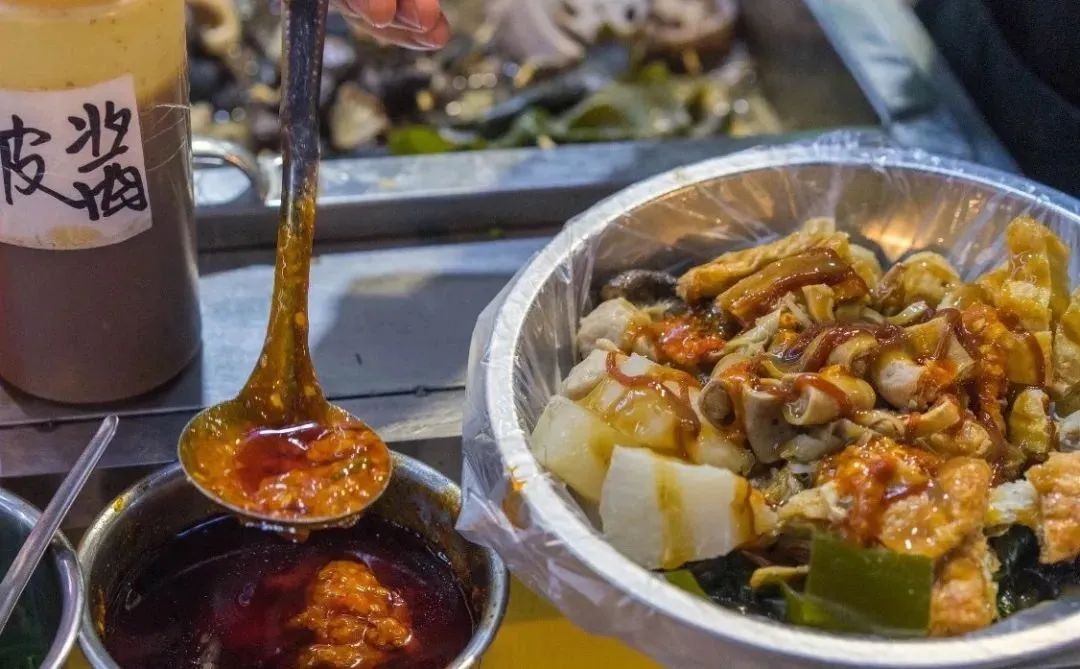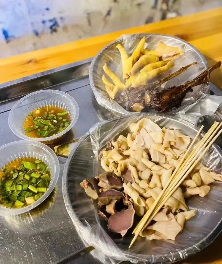 卤水将平时不起眼的食材——鸭肠、鸭胗、鸭脚、鸡翅等化作最抓胃的小吃。经过卤制后的食材配上秘制的酸汁,开胃爽口,回味无穷。