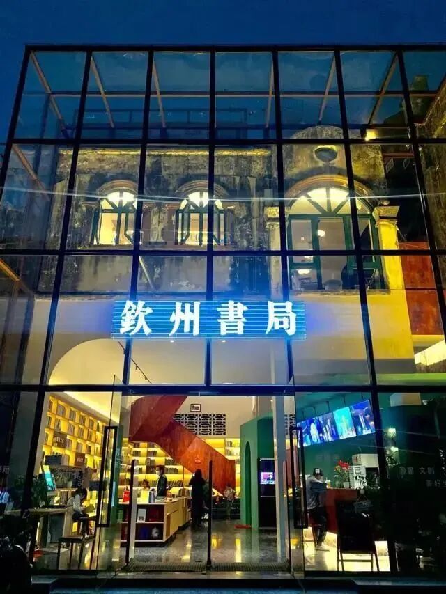 骑楼街里有一栋亮眼的建筑,落地玻璃将岭南骑楼风格的钦州书局精心保护起来,干净、明亮、整洁,是一处自由人文的公共文化空间。