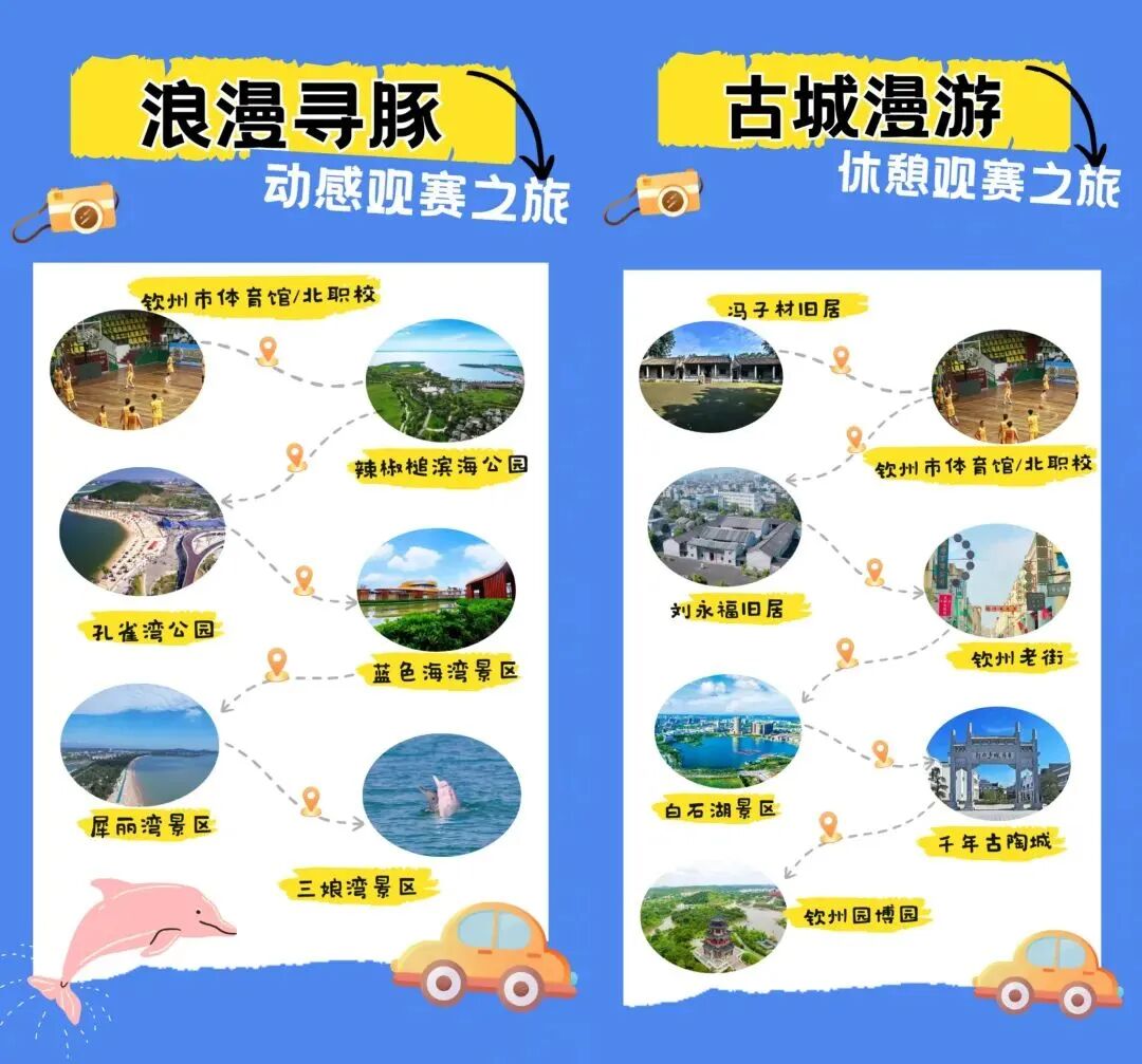 为迎接2024年广西青少年男子篮球锦标赛,依托钦州丰富的文化旅游资源,钦州市文化广电体育和旅游局策划推出“浪漫寻豚·动感观赛之旅”、“古城漫游·休憩观赛之旅”、“长寿福地·生态观赛之旅”、“森林康养·休闲观赛之旅”、“滨海运河·自驾观赛之旅”等5条“跟着赛事去旅行”精品旅游线路并作宣传推介,诚邀参赛选手和外地游客在领略赛事精彩的同时,了解钦州、走进钦州、品味钦州,感受钦州“河、海、山、岛、蚝”及文化之美。赛事吸引了各地体育爱好者和游客前来钦州旅游,积极带动了餐饮、商超、文旅等消费。