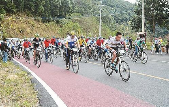 这条线路全长约40多公里(其中旅游公路20公里,健身步道约20多公里),全程位于全国最大的11.38万亩连片天然次生红椎林中心腹地,生态环境保护完好,空气清新,负离子含量高达2万个/cm³以上,山高林茂、草绿石奇、谷幽水秀、雾浓云美,是游客进行康体、养生、禅修的胜地。线路内包含五皇山、石祖禅茶园、石祖花果田园3个景区,其中五皇山是国家AAAA景区,目前各景区均已建设了集户外运动、观光旅游、休闲养生、度假居住一体的体育休闲运动康养基地。举办山地徒步运动比赛和自行车骑行比赛3次,石祖禅茶园综合体育馆开展篮球、气排球、乒乓球、电子射击等体育赛事50多场次,参加的选手超过1万人次。
