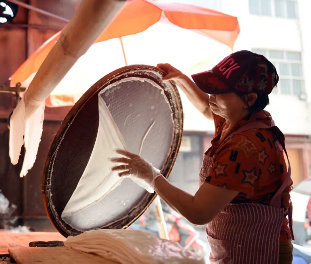 灵城刮粉外形纤薄如纸,油光闪亮,入口香滑。用大米浸泡6-8小时磨成米浆,调配生熟浆,倒适量在刷好油的蒸屉上,将剁碎、调制好的猪肉馅在米浆上均匀摊开,喜欢吃鸡蛋的可以再打一个蛋进去,还可以根据口味加入火腿、腊肠等食材,然后将蒸屉放入蒸笼。2022年4月,“灵城刮粉制作技艺”列入第七批市级非遗代表性项目名录。