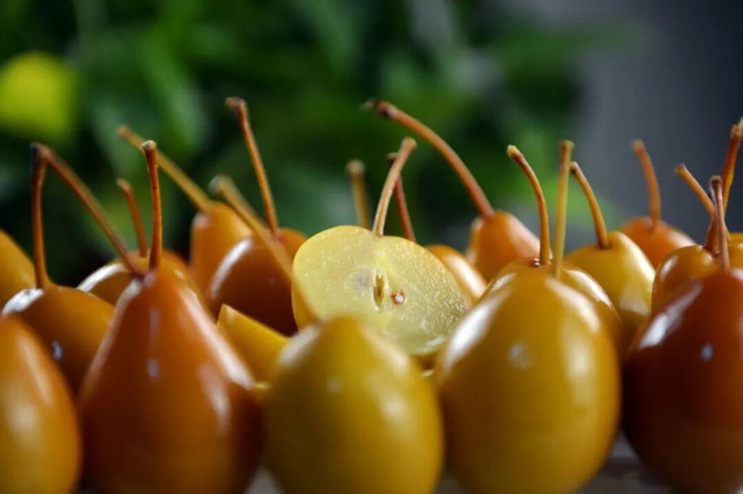 板城碗窑梨花谷,是广西最大的绿色无公害棠梨生产基地之一。所结果实棠梨是姑娘们的最爱。其果皮微黄,果肉嫩白透黄、可带皮一起吃,如沾上甘草盐、辣椒酱,酸甜爽脆,消暑解乏,刮油除腻,让人垂涎欲滴。2022年4月,“板城碗窑梨花谷棠梨腌制技艺”列入第七批市级非遗代表性项目名录。