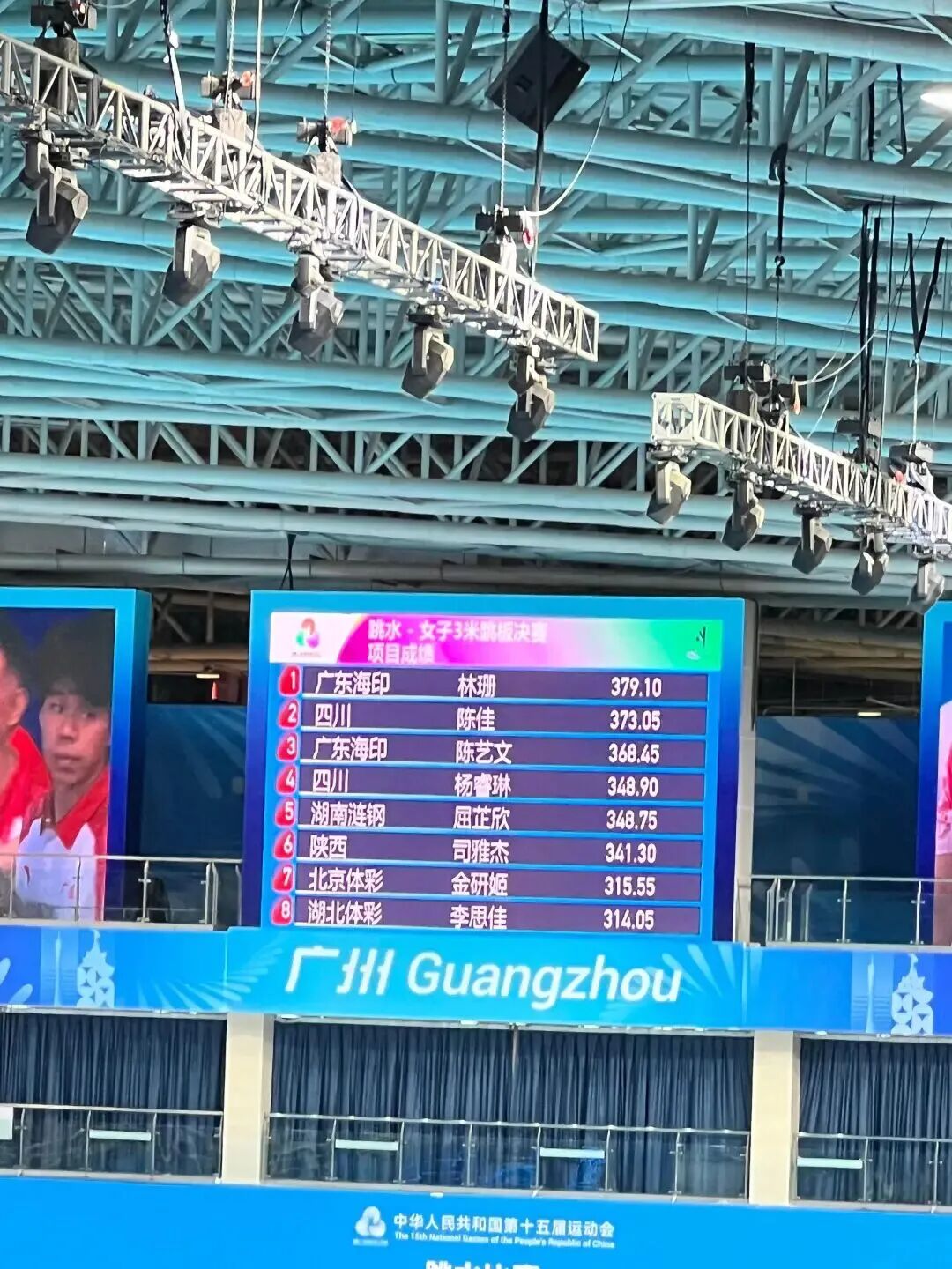 在11日结束的第十五届全运会跳水女子3米跳板决赛中,广东队选手林珊以379.10分的总成绩,力压第二名四川队选手陈佳,摘得桂冠。巴黎奥运会双金得主、广东队选手陈艺文则以368.45分位列第三。