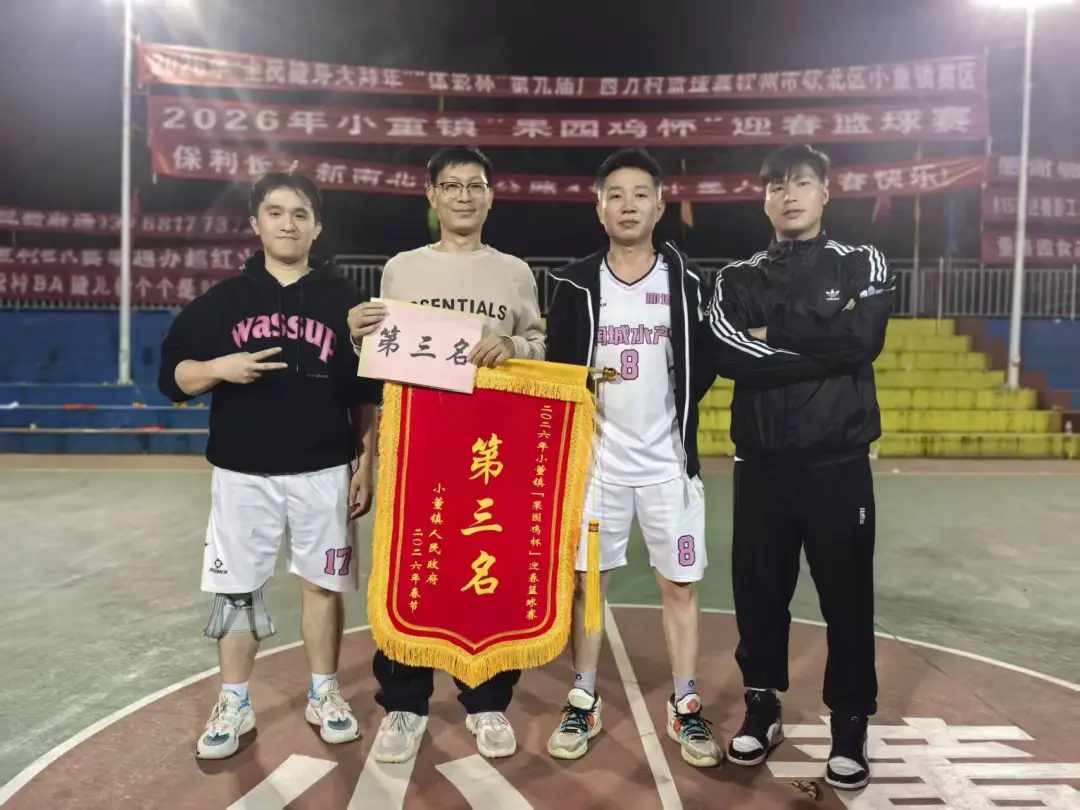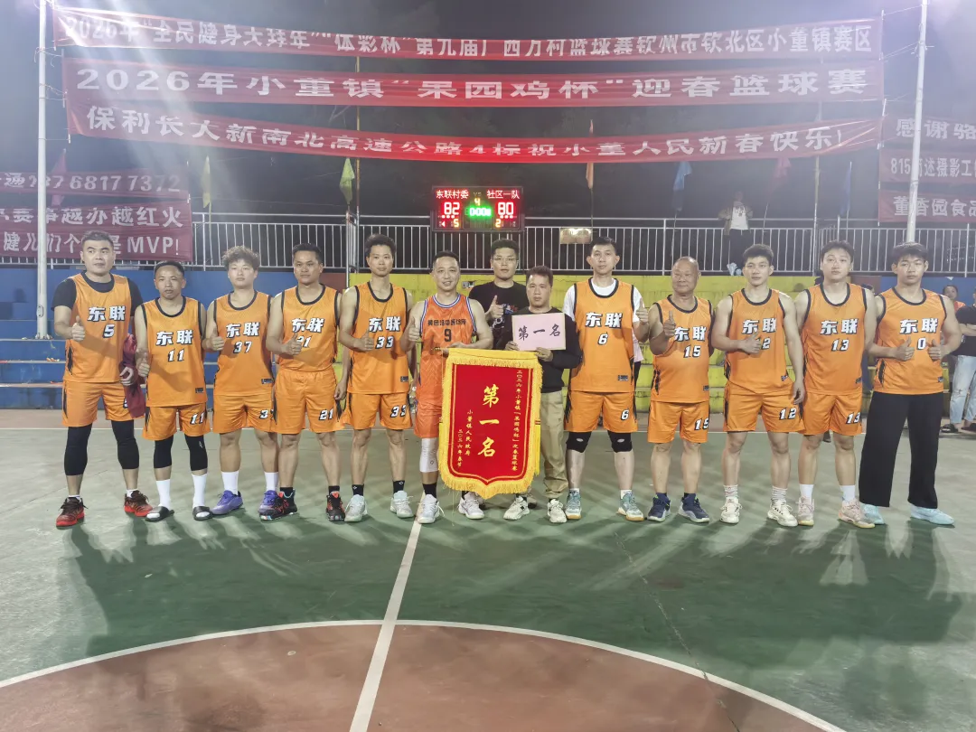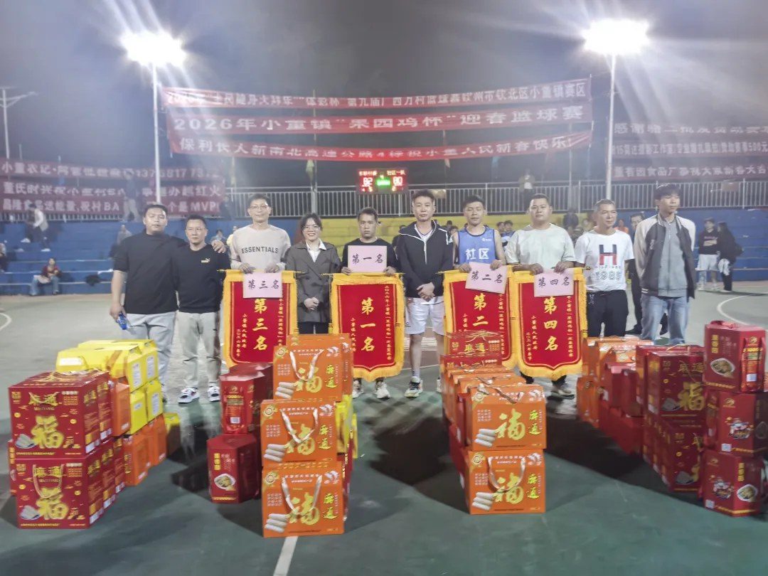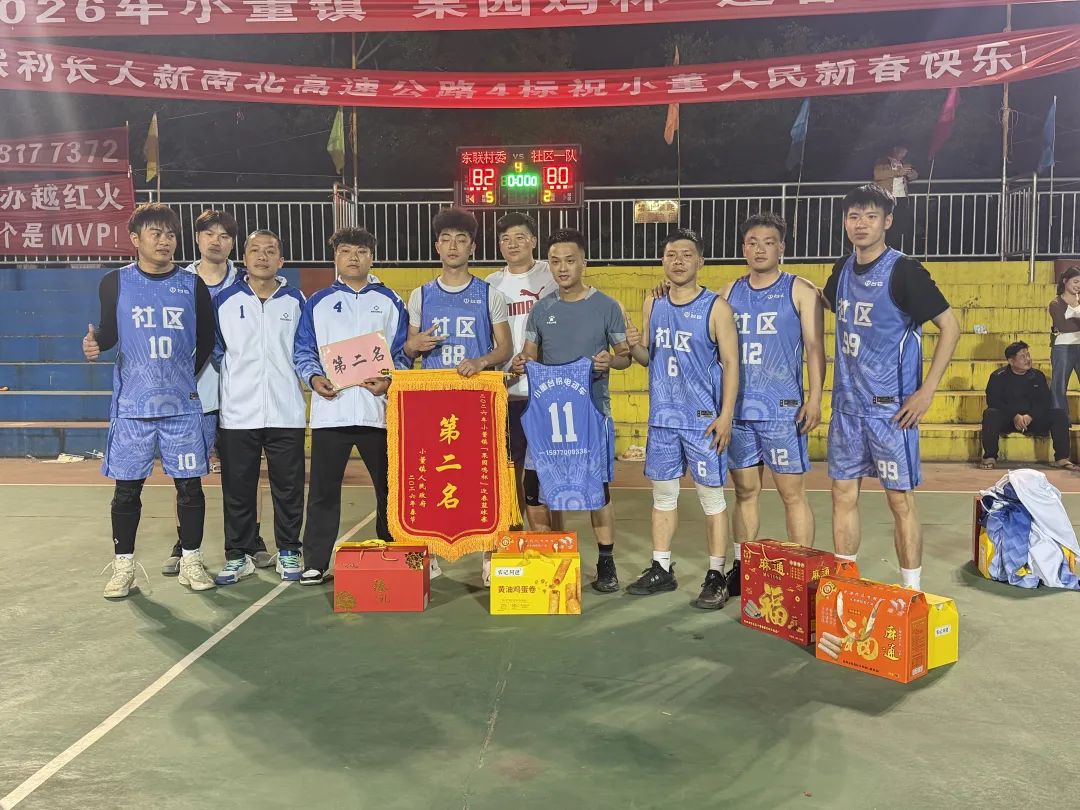 2月22日晚,随着终场哨响,2026年小董镇“果园鸡杯”迎春篮球赛在小董镇圆满收官。本次赛事历时18天,共有16支球队参与角逐,为观众奉献了一场场精彩对决。决赛中,东联队与社区一队战至最后时刻,凭借最后读秒阶段的一记2分绝杀,东联队以82:80险胜,夺得冠军!小董社区一队获得亚军,那道队获得季军。