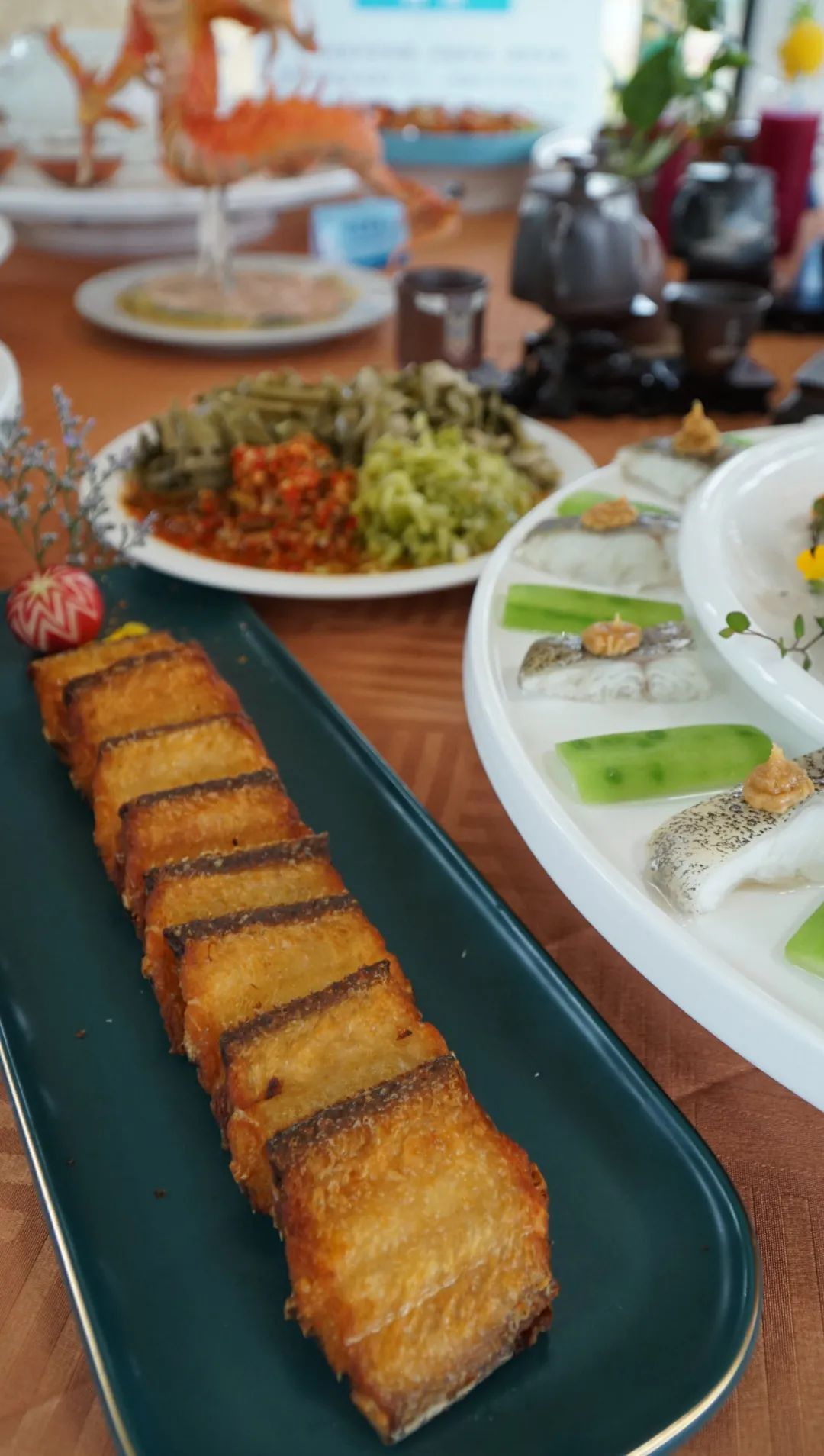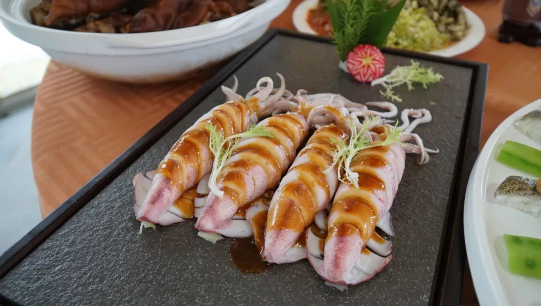 以新鲜鱿鱼为 “衣”,裹入鲜虾等手作的 “百花馅”,煎至外皮金黄酥脆,内馅弹嫩多汁。海鲜的清甜与镬气的焦香完美交织,每一口都饱含钦州厨师的匠心,是滨海风味的创意呈现。