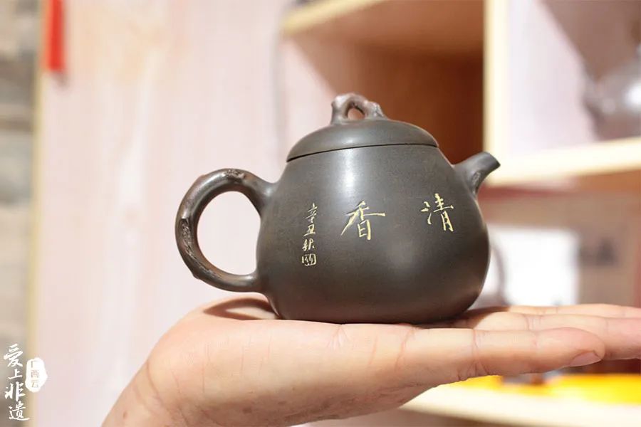 阴阳窑变的坭兴陶茶壶。陈先怡 摄