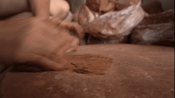 揉泥准备拉坯。摄像:胡兆双 制作:胡兆双
