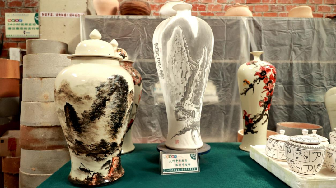 非遗不仅活在舞台上,更走进市场、走进生活。在小江瓷艺术展销中心,结晶釉瓶、双龙罐彩陶等作品琳琅满目,其中《千古书韵》《寿仙茶具》等作品曾6次作为国礼走向国际。