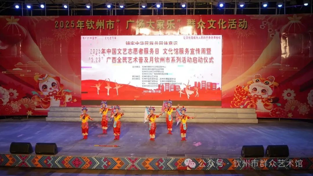 5月23日晚,钦州湾广场的夜空被艺术的光辉点亮,“大家乐”舞台迎来了热烈的掌声与欢呼声——2025年“中国文艺志愿者服务日”文化馆服务宣传周暨“5·23广西全民艺术普及月”钦州市系列活动启动仪式在此举行。活动由钦州市新时代文明实践中心、中共钦州市委员会宣传部、钦州市文学艺术界联合会、钦州市文化广电体育和旅游局主办,钦州市群众艺术馆承办,并得到钦州市各艺术协会及文化志愿者的大力支持。