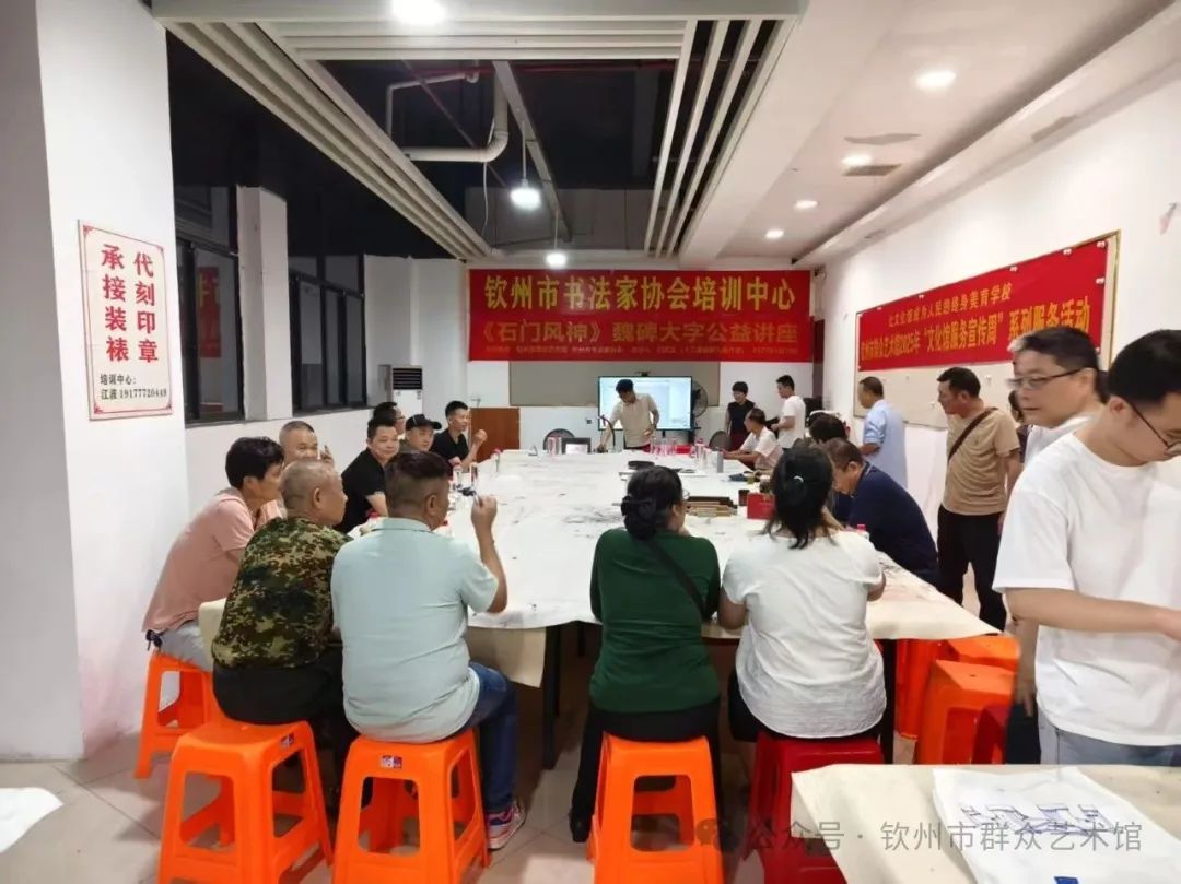 文化馆服务宣传周期间,举办了“翰墨薪传·笔绘新时代”书画文化进校园讲座和《石门风神》魏碑大字公益讲座,为学生、家长带来了一场知识与审美的盛宴,既润泽了校园的文化土壤,又播撒了科学的种子,成效显著。钦州市群众艺术馆秉持传承弘扬优秀传统文化,不断满足人民群众精神文化需求,文艺志愿者们积极助力此次书画、科普进校园活动,充分发挥钦州市群众艺术馆公益文化服务职能和文旅五进的工作开展,为推动钦州公共文化服务高质量发展做出了积极贡献。