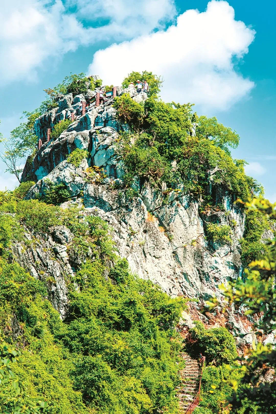 “游眺灵阳石六峰,锦屏常有白云封;乘危绝顶应须到,疑是蓬莱第一重。”自古以来,六峰山就以景色奇丽著称。喀斯特地貌赋予其峥嵘峭拔的山势,六座山峰参差相对,峰与峰之间山径萦纡、古木蓊郁,洞穴深邃、奇岩迭出,著名岭南派画家黄独峰将其比作“缩小了的黄山”。