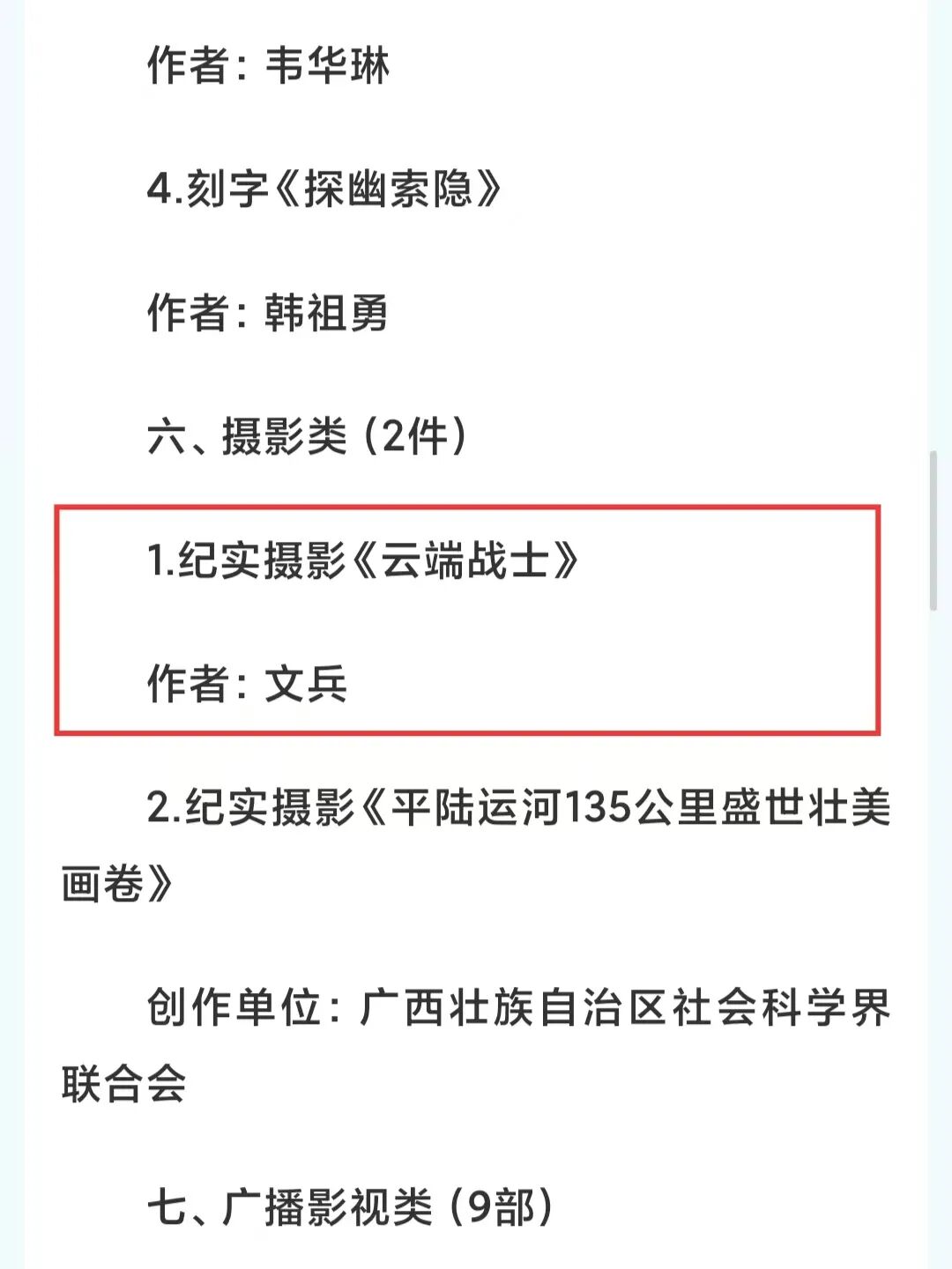 近日,为表彰先进、树立典型,持续激励广大文艺工作者勇攀高峰、追求卓越,营造全社会重视文艺创作、支持文艺事业发展的浓厚氛围,自治区党委、自治区人民政府决定,授予共50个作品及个人荣获第十二届广西壮族自治区文艺创作铜鼓奖。其中,钦州市文兵摄影作品《云端战士》、韦华琳楷书作品《临江仙钦州》获奖!