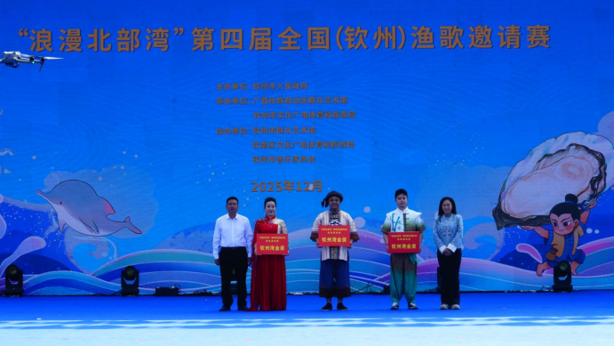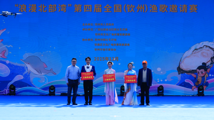 随着特邀表演节目《海歌声声赞蚝乡》的演唱结束,“浪漫北部湾”第四届全国(钦州)渔歌邀请赛圆满落幕,随后进行了颁奖。