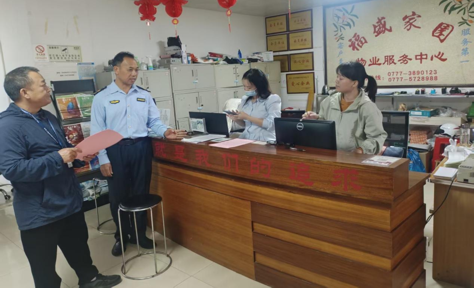 △执法人员与社区物业沟通协作