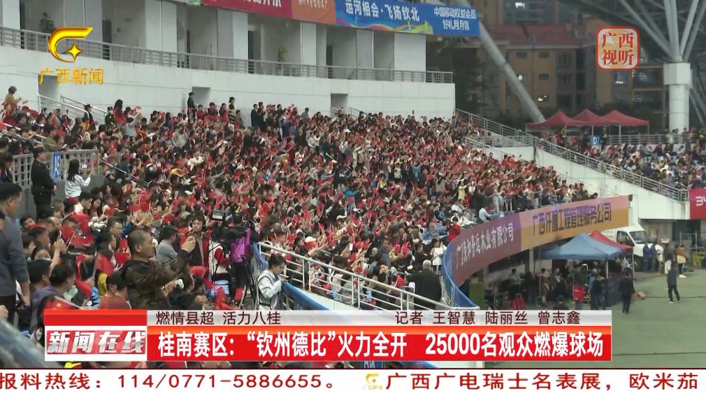 接下来关注2025-2026“国控杯”广西县级足球超级联赛。这个周末,“县超”火热开赛。比赛既有强强对话,也有大比分的进球大战,更有冷门爆出,赛场内外更是氛围感拉满。首先来聚焦桂南赛区。昨晚, 钦州市钦北区队与灵山县队上演了本轮最受关注的比赛——“钦州德比”。此前首轮双双告捷的两支同城劲旅狭路相逢,现场更是来了两万五千多名观众,创下了“县超”开赛以来第二多的现场观众人数。