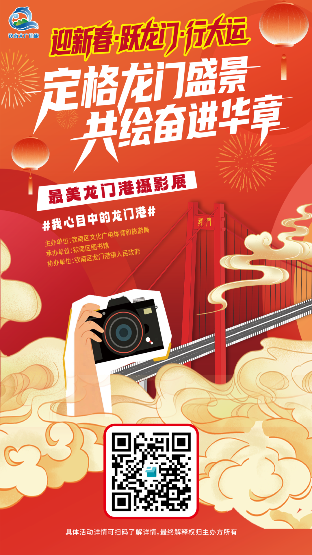 2026年马年新春将至,为定格龙门港独特的滨海风光与新春盛景,传承百年渔家文化,彰显港镇向海而兴的奋进风貌,钦南区特举办 “迎新春・跃龙门・行大运” 最美龙门港摄影展,现面向全社会摄影爱好者公开征集摄影作品,诚邀大家用镜头捕捉龙门港的自然之美、人文之暖、发展之盛,共赴这场新春文化盛宴!