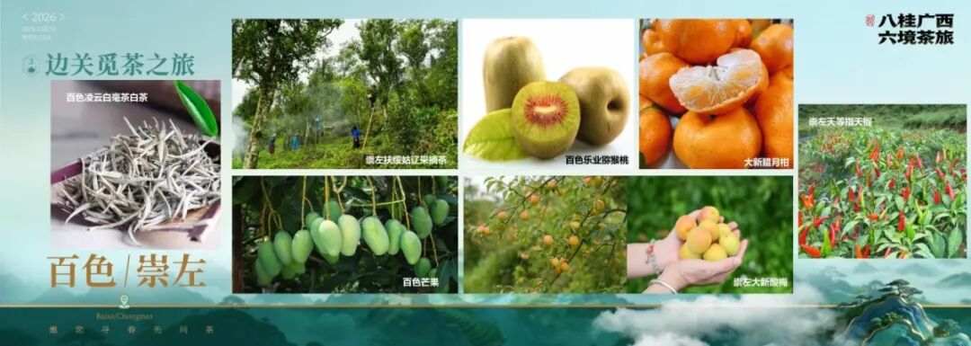 边关觅茶之旅沿百色凌云、崇左扶绥边境线展开,探访茶山金字塔、姑辽茶文化生态旅游区,品凌云白毫茶、姑辽古树茶,感受边境风情与古茶秘境的独特魅力。