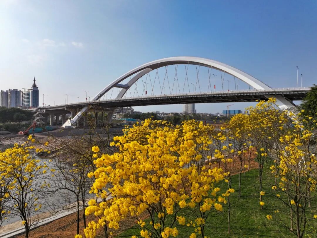初春时节,钦州城区迎来一年一度“花开盛季”。连日来,木棉花、黄花风铃、宫粉紫荆等各色花卉次第绽放、竞相争艳,将整座城市装点得诗意盎然,吸引不少市民游客前来赏花打卡、定格美好。