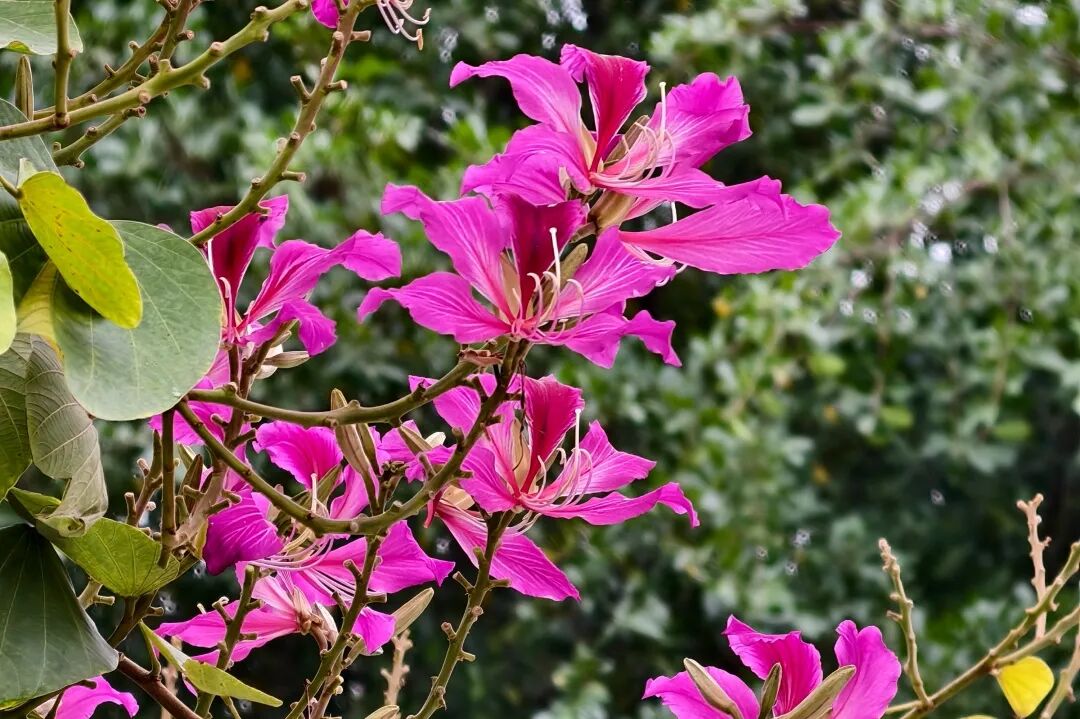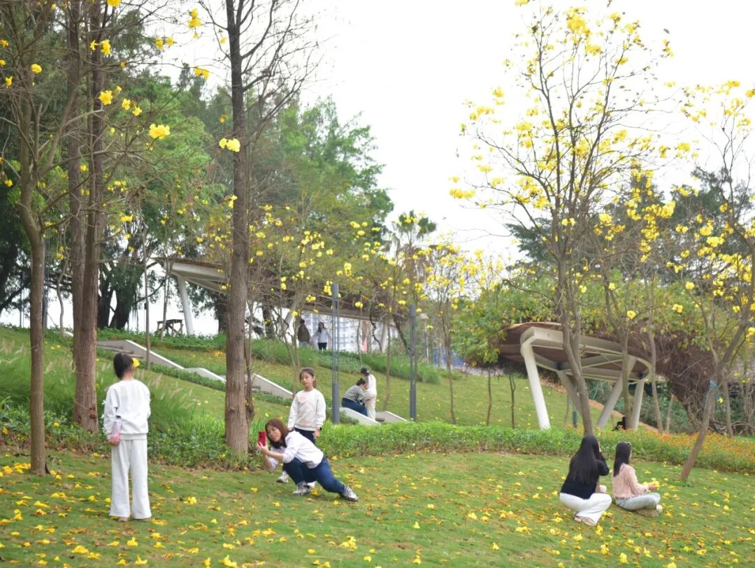 钦江两岸更是春日颜值担当,黄花风铃木沿堤岸绵延成金色长廊,与江水相映蔚为壮观;宫粉紫荆粉嫩柔美点缀江岸,一步一景,尽显春日浪漫。在钦州园博园,这里同样花开正盛、花量饱满,春风拂过花瓣轻扬飘落,形成浪漫花径,游人如织、拍照不断,人在花中走,如在画中游。