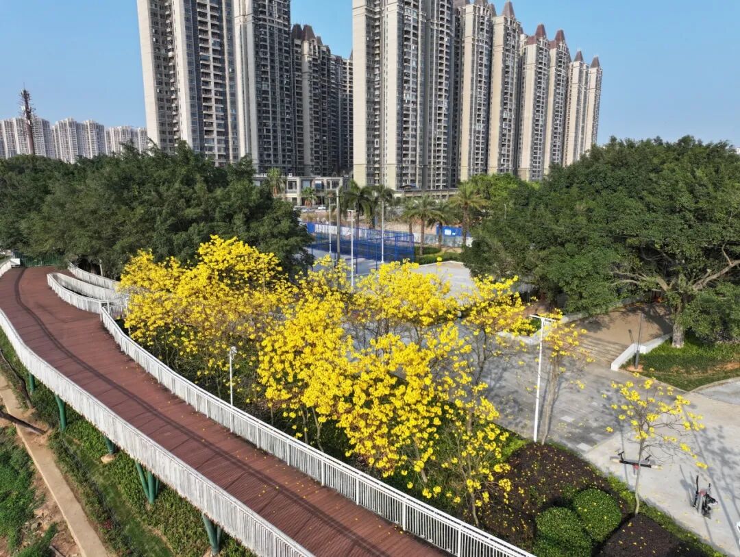市区永福东大街、扬帆大道南延长线、金海湾东大街等多条主干道,以及进喜园、梦园广场、永福广场等公园广场花景迷人,木棉、黄花风铃木、宫粉紫荆作为核心景观花树,花开满枝,让市民出门即遇春,随手一拍都是城市美景。其中木棉红红火火,黄花风铃木金黄透亮,宫粉紫荆粉色浪漫,成为春日里最亮眼的色彩。