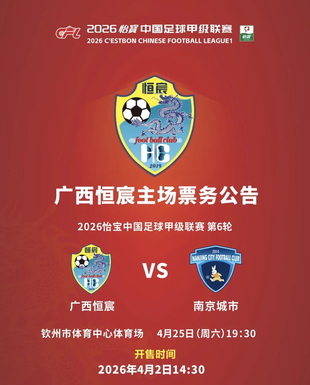 钦州赛区首战正式开票啦!