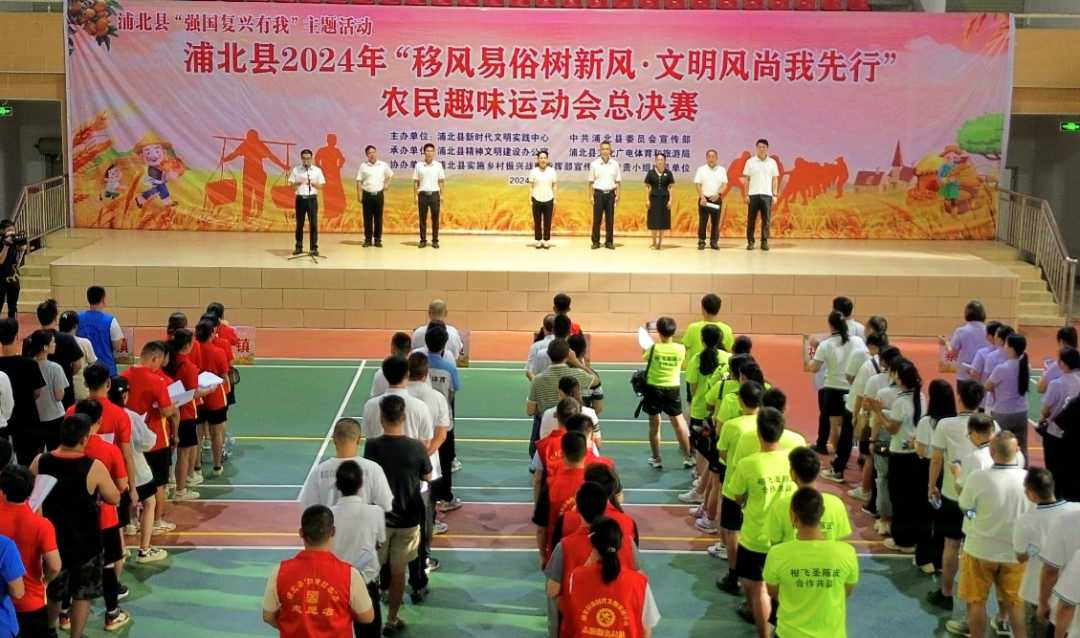 9月19日,浦北县在县体育馆举办2024年“移风易俗树新风·文明风尚我先行”农民趣味运动会总决赛,共有来自全县17个镇(街道)代表队参赛。县委常委、宣传部部长覃永雁出席活动并宣布运动会开幕。