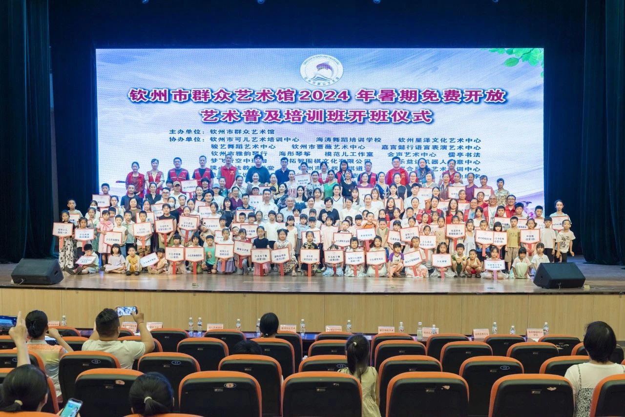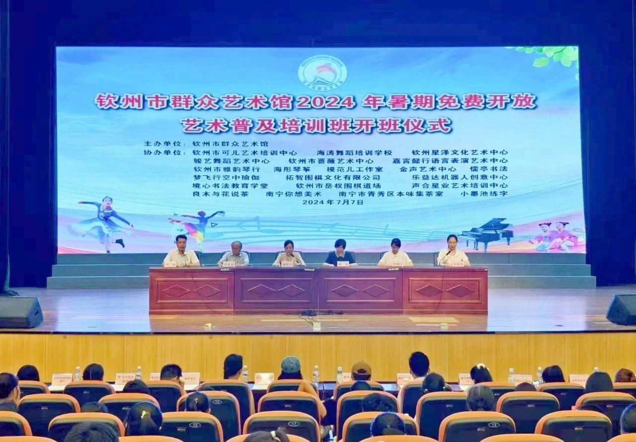 2024年7月7日,钦州市群众艺术馆在市老年大学多功能厅举行2024年暑期免费开放艺术普及培训班开班仪式,27名市群艺馆辅导员、19名培训机构负责人、300余名培训班学员代表及授课老师参加了开班仪式。