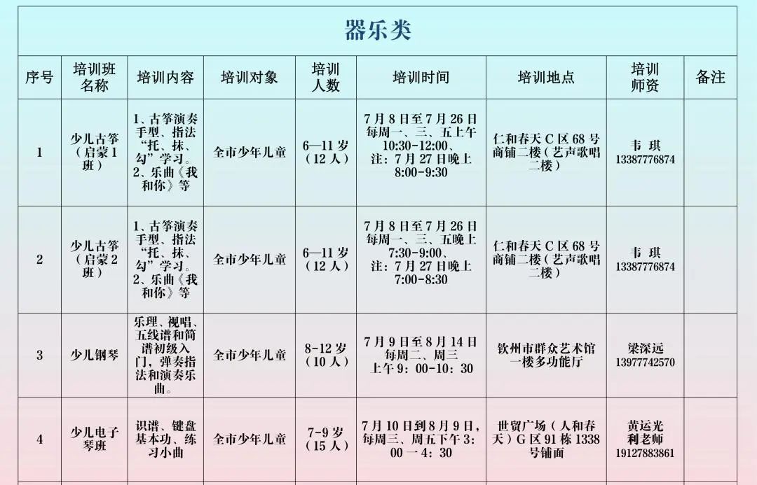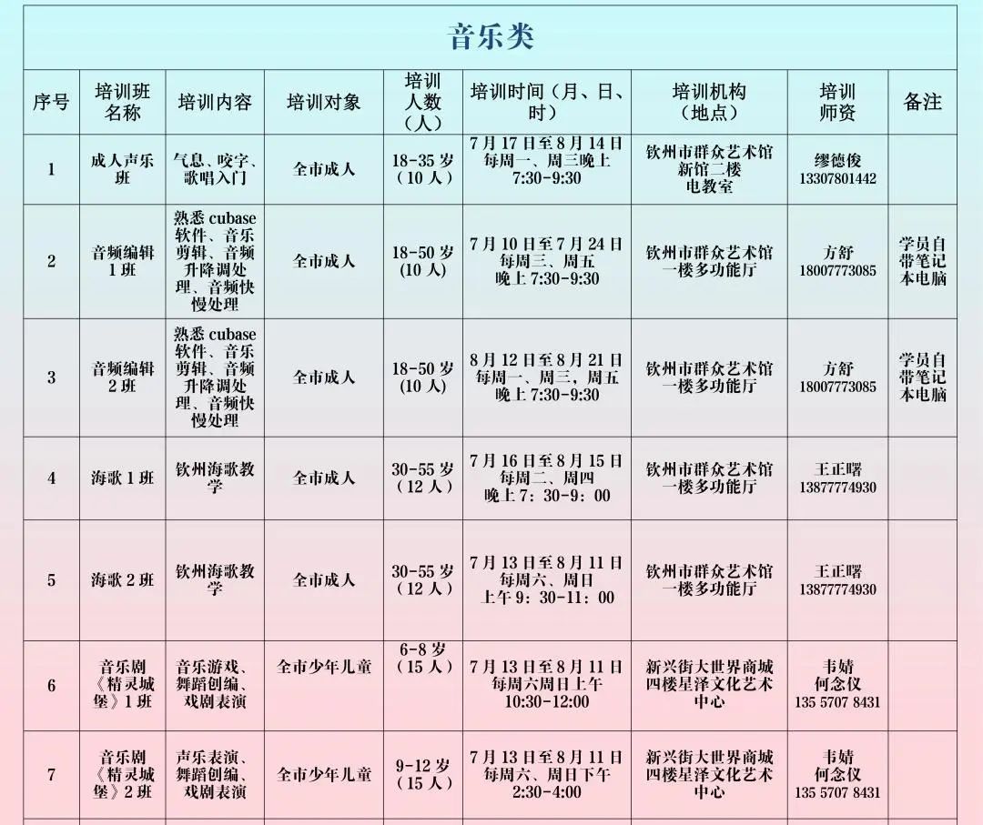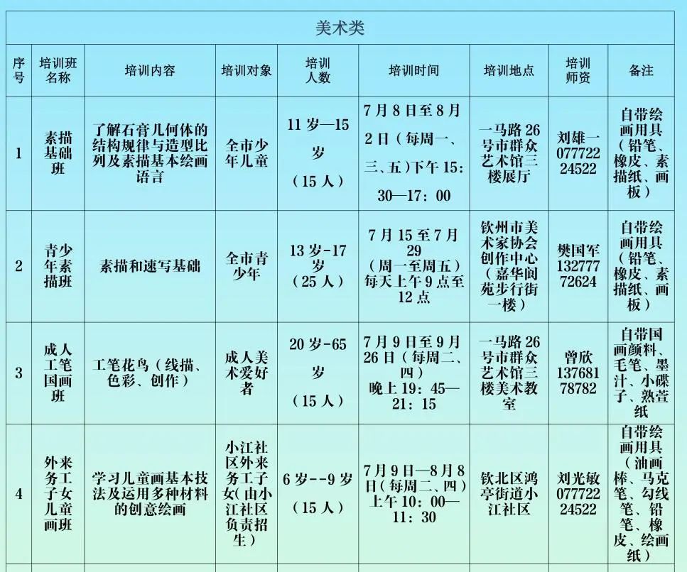 钦州市群众艺术馆2024年暑期免费开放艺术普及培训班即将开启线上报名通道,这是一个为广大艺术爱好者提供的免费学习机会。无论您是初学者还是有一定艺术基础的人,都可以在这里找到适合自己的课程。