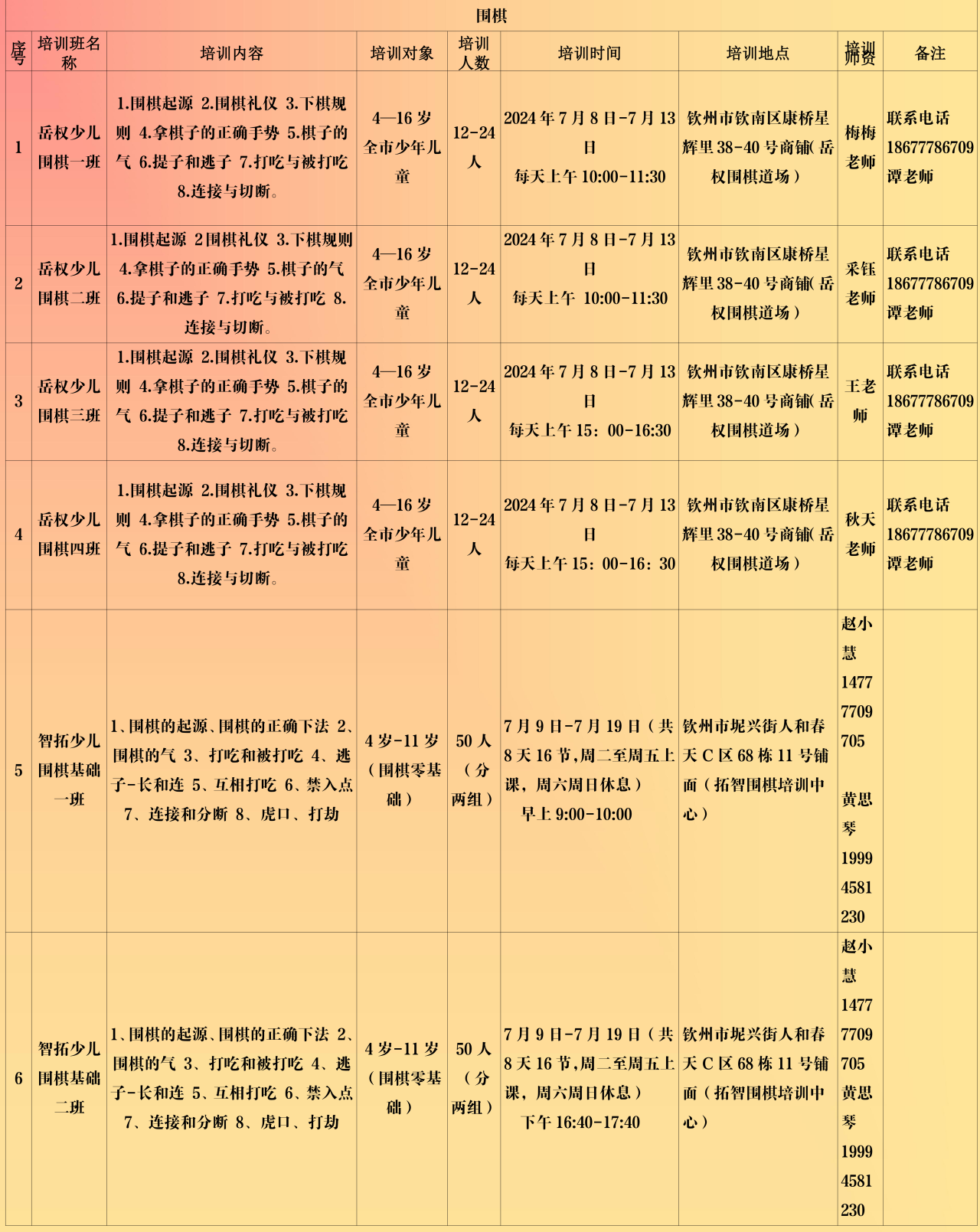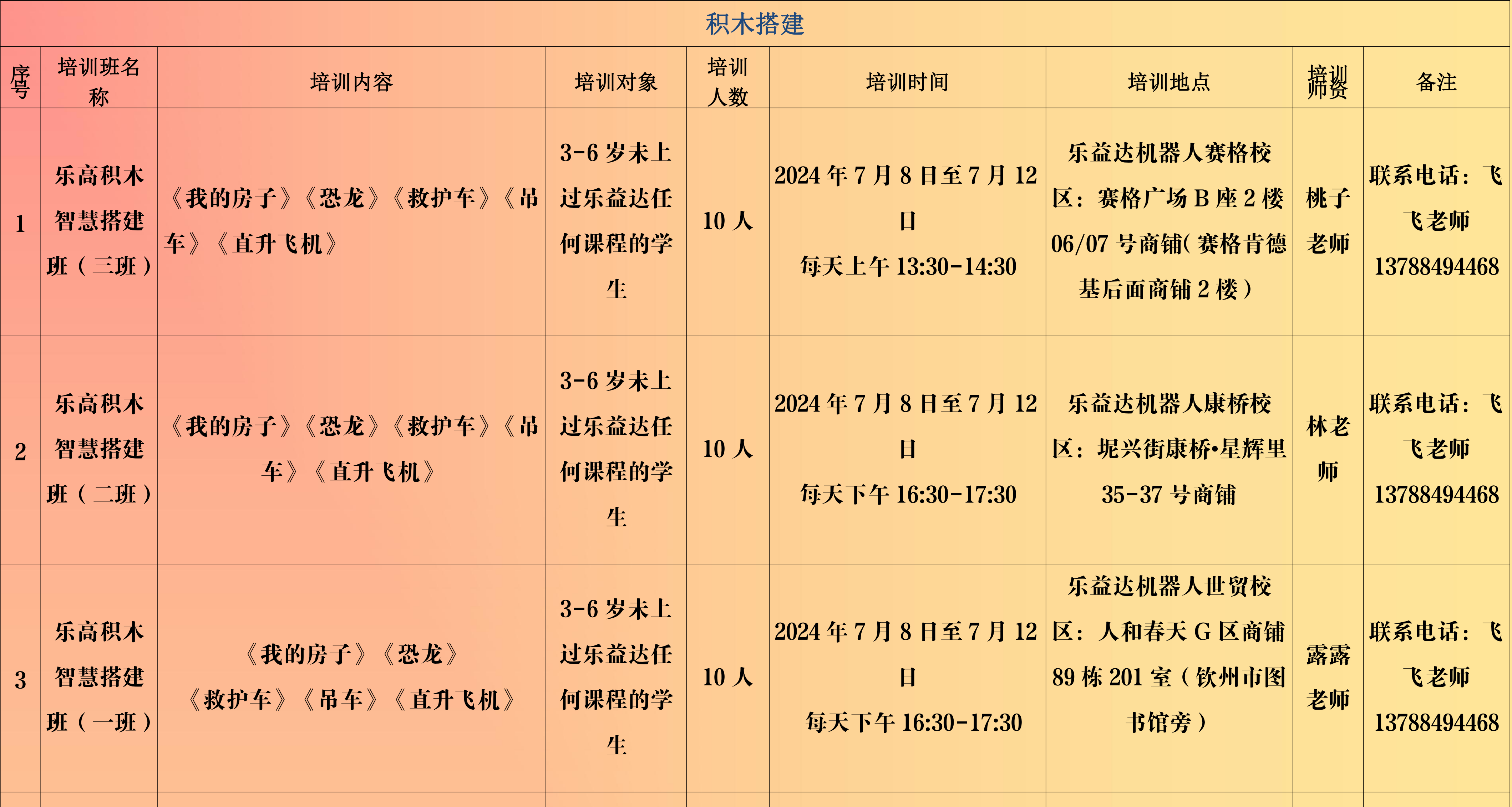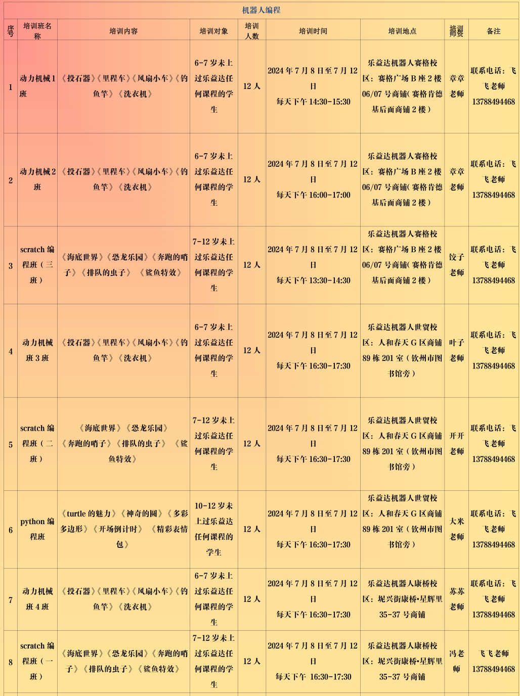 (注:招生计划表后附报名流程,请各位学员认真阅读后报名)
