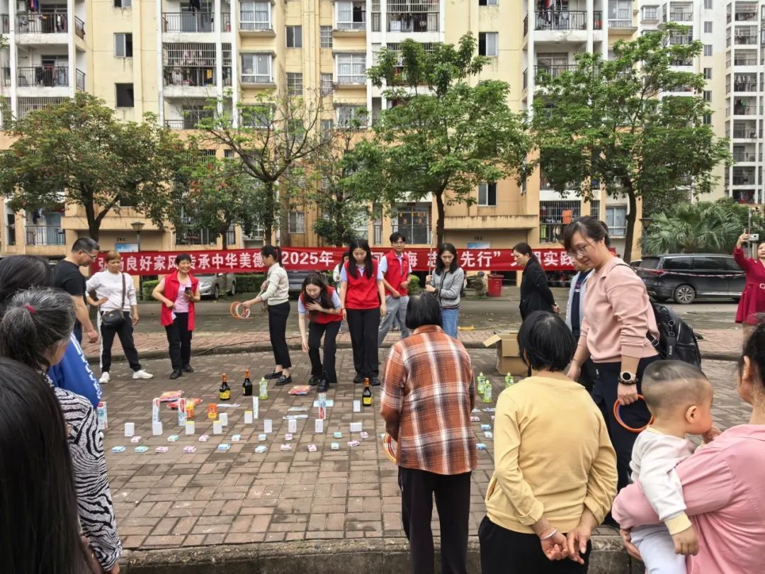 现场还有很多精彩的活动环节,特别是自治区级非遗项目“黄氏草药疗骨法”代表性传承人黄金邦老先生到现场开展骨科义诊,群众早早就排队等候,是现场期待值最高的活动之一。趣味套圈是一项老少皆宜的活动,简单有趣的活动吸引了社区群众积极参与,奖品既有生活用品也有学习用品,实用丰富,深受群众欢迎。有一位阿姨套中了两瓶酱油和一大瓶洗洁精,高兴地向大家展示自己的成果。活动持续了一个半小时左右。