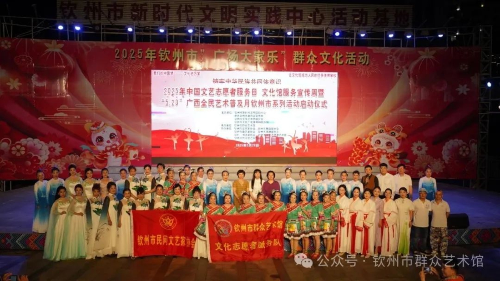 5月23日晚,钦州湾广场的夜空被艺术的光辉点亮,“大家乐”舞台迎来了热烈的掌声与欢呼声——2025年“中国文艺志愿者服务日”文化馆服务宣传周暨“5·23广西全民艺术普及月”钦州市系列活动启动仪式在此举行。活动由钦州市新时代文明实践中心、中共钦州市委员会宣传部、钦州市文学艺术界联合会、钦州市文化广电体育和旅游局主办,钦州市群众艺术馆承办,并得到钦州市各艺术协会及文化志愿者的大力支持。